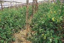 No centro, coloca-se uma vara de bambu ou madeira com cerca de dois metros de altura, para que as plantas sejam amarradas até o final da produção. O espaçamento entre as linhas é de dois metros.